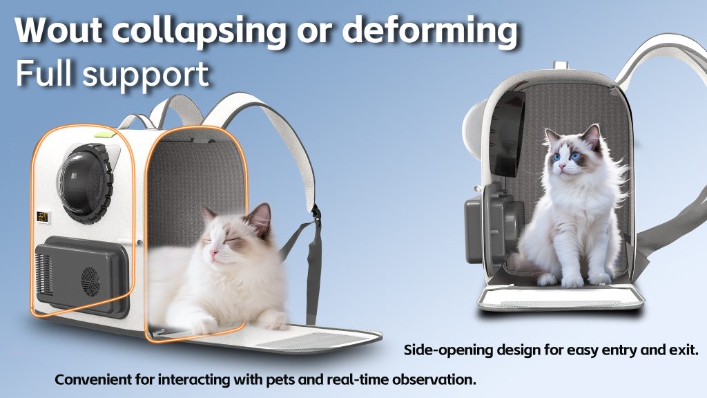 此外,博赛纳背包的天窗设计让您可以随时打开,方便为猫咪喂食,而侧边卷帘设计则可以卷起通风透气,放下防止猫咪应激。利用这些设计,您可以在短途旅行中观察宠物的行为和反应,并根据需要调整背包的设置。这不仅有助于宠物适应新环境,也能为您提供宝贵的使用经验。