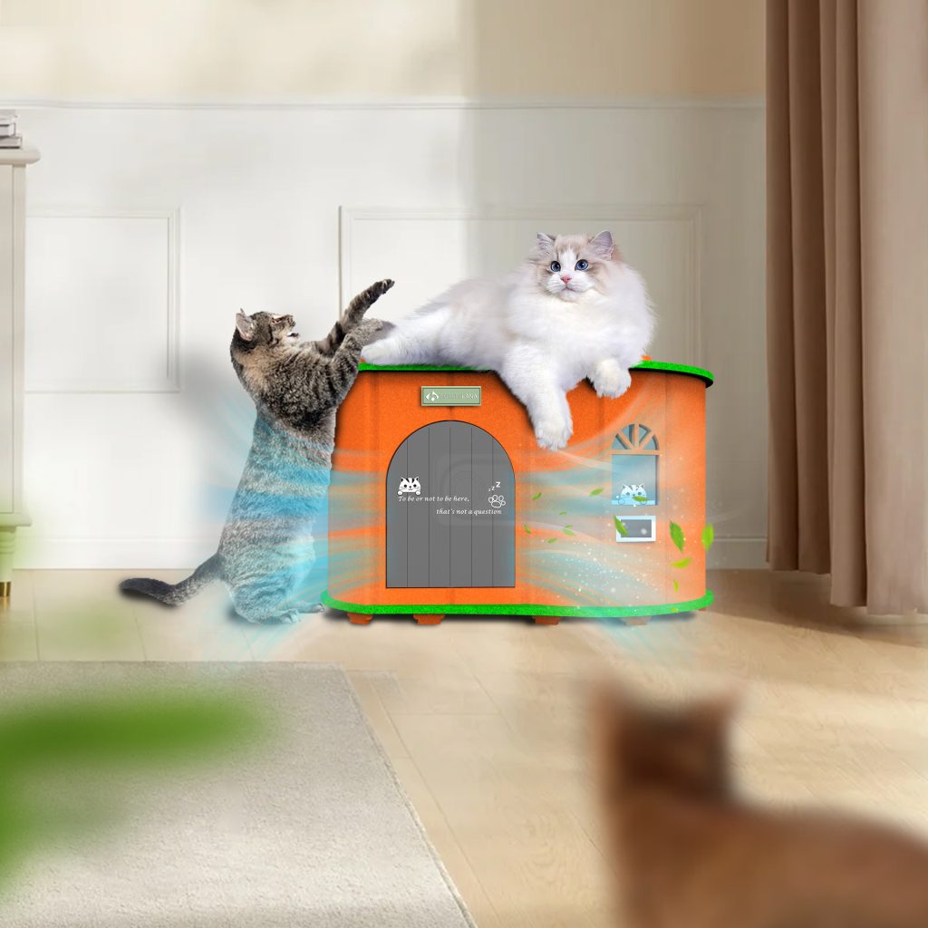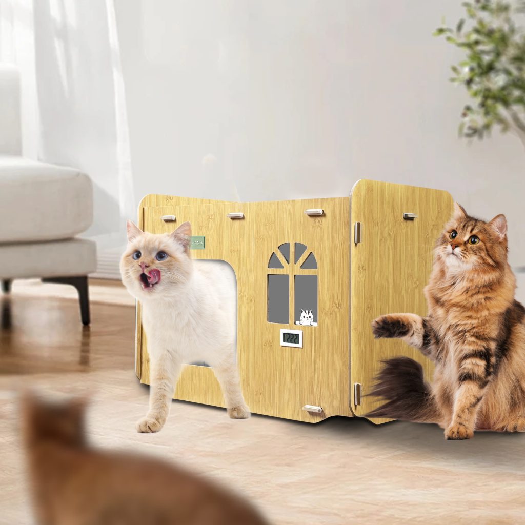 When the seasons swing between cold and hot, what pets need most is a place to live that can always maintain a comfortable feeling. Based on the three principles of safety, intelligence and ease of use, we have created this smart constant-temperature heating and cooling pet house: through AI intelligent constant-temperature and dual-mode heating and cooling, it achieves ±1°C precise temperature control and real-time temperature display. Automatic power-off protection in case of abnormal temperature, combined with a power adapter that has passed UL and FCC safety certifications and anti-biting cables, provides multiple layers of protection for every rest. What’s more considerate is that the system is equipped with a built-in negative ion active sterilization and deodorization module, ensuring that even families with multiple pets can maintain fresh air. It can be easily installed without tools. The cat-specific gripper allows you to play and rest at the same time, and is also suitable for small dogs to share.